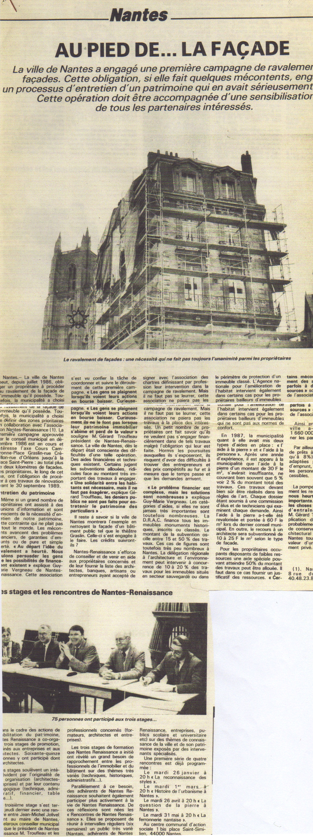- Organiser des formations ; Lire article : Nantes Renaissance et la réhabilitation du patrimoine